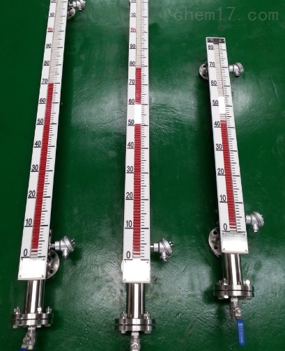 根據浮力原理,浮子在測量管內隨液位的升降而上、下移動,浮子內的永久磁鋼通過耦合作用,驅動紅、白色翻柱翻轉180°,液位上升時翻柱由白色轉為紅色,下降時由紅色轉為白色,從而實現液位指示。