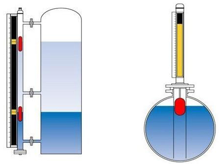 磁翻板液位計(也可稱為磁性浮子液位計)根據浮力原理和磁性耦合作用研制而成。當被測容器中的液位升降時,液位計本體管中的磁性浮子也隨之升降,浮子內的永久磁鋼通過磁耦合傳遞到磁翻柱指示器,驅動紅、白翻柱翻轉180°,當液位上升時翻柱由白色轉變為紅色,當液位下降時翻柱由紅色轉變為白色,指示器的紅白交界處為容器內部液位的實際高度,從而實現液位清晰的指示。