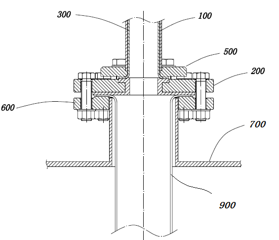針對傳統頂裝式電接點遠傳磁翻板液位計的這些弊端,在多次試驗的基礎上,對現有的內襯工藝與結構做了改進,發明了頂裝式電接點遠傳磁翻板液位計的一種新工藝及其結構,如下圖所示,其提供了*一連接件和連接內襯。該連接內襯具有用于連通內襯連接口的*一連接口、自*一連接口向外成環形設置的*一密封部、用于與被測容器連通的*二連接口和自*二連接口向外成環形設置的*二密封部。由于該*一連接件和連接內襯為單獨設置,可以單獨制造,因此*一密封部和*二密封部可以制作的足夠大,從而實現*一密封部與浮筒內襯的翻折部密封抵接;同時,連接內襯的*二密封部用于與容器實現密封連接。由此,該連接內襯可以與浮筒內襯和容器開口內的護筒形成完全密封的連接,從而避免連接處的金屬面受腐蝕,使生產安全順利地進行,免受因發生生產安全事故對生命和財產造成的安全威脅。
