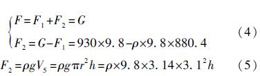 式中:F為浮球在水中的浮力;G為浮球的質(zhì)量;ρ為水的密度。
