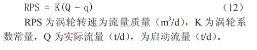 ①吸汽量。計(jì)算射孔層位吸汽量,可以通過(guò)六參數(shù)純水罐液位計(jì)的渦輪流量計(jì)實(shí)現(xiàn)。忽略低流速時(shí)渦輪的非線性響應(yīng)及密度對(duì)渦輪轉(zhuǎn)速的影響,則渦輪轉(zhuǎn)速 RPS 與流速成正比 :