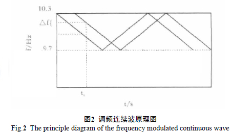 因此R與△f是成正比的,故反射液面離雷達天線的距離越遠,則所產(chǎn)生的差頻頻率△f越大,由此可計算天線到反射面的距離。