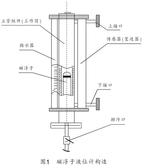 遠傳式高溫渣油液位計由磁浮子、工作筒、指示器、遠傳變送器組成,如圖 1 所示。