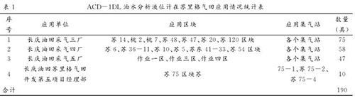 在試驗成功的基礎上,蘇里格氣田對 ACD-1DL 油水分析液位計進行了全面推廣,截止到 2014年 11 月底,共在 87 座集氣站應用 190 臺,各單位應用情況統計見表 1 。