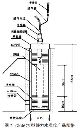 GeoKon 4675 型靜力水準(zhǔn)儀是一種高精密液位系統(tǒng),該系統(tǒng)設(shè)計是 用于測量多點相對沉降的系統(tǒng)。在使用中,一系列的傳感器容器均采用PVC 液管聯(lián)接,每一容器的液位由一精密振弦式力傳感器測出,該傳感 器內(nèi)有一個自由懸重,一旦液位發(fā)生變化,懸重的懸應(yīng)浮力即被傳感器感,精確測出小至 0.025mm 的垂直變化。在多點系統(tǒng)中,所有傳感器的垂 直位移均是相對于其中的一點,該點的垂直位移是相對恒定的或者可用其它人工觀測手段準(zhǔn)來確定。