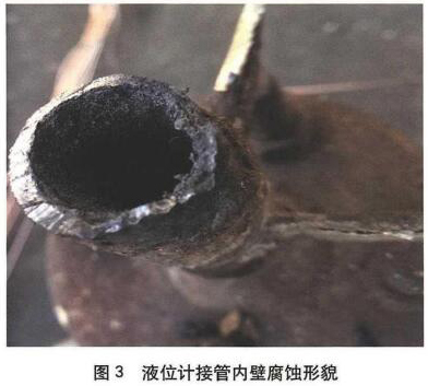 分離罐液位計接管先于罐體腐蝕泄漏失效是由于管壁較薄加之外表面防腐保溫不完整導致雨水侵人常年腐蝕所致。對此應引起設計、制造、使用及檢驗等相關各方為戒。