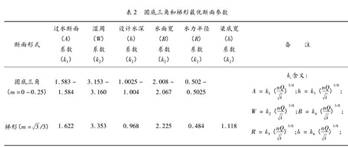 此外,U 型非常好的斷面為圓底直角時,設計水位線上在圓心上。斷面參數(shù)見表 2。