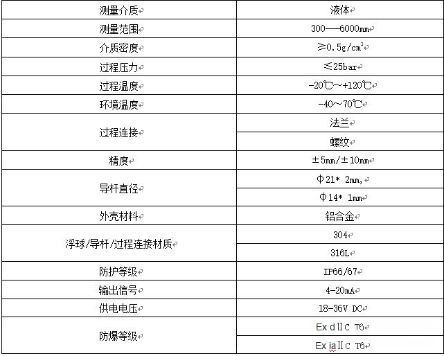 二、不銹鋼浮球液位計(jì)的參數(shù)